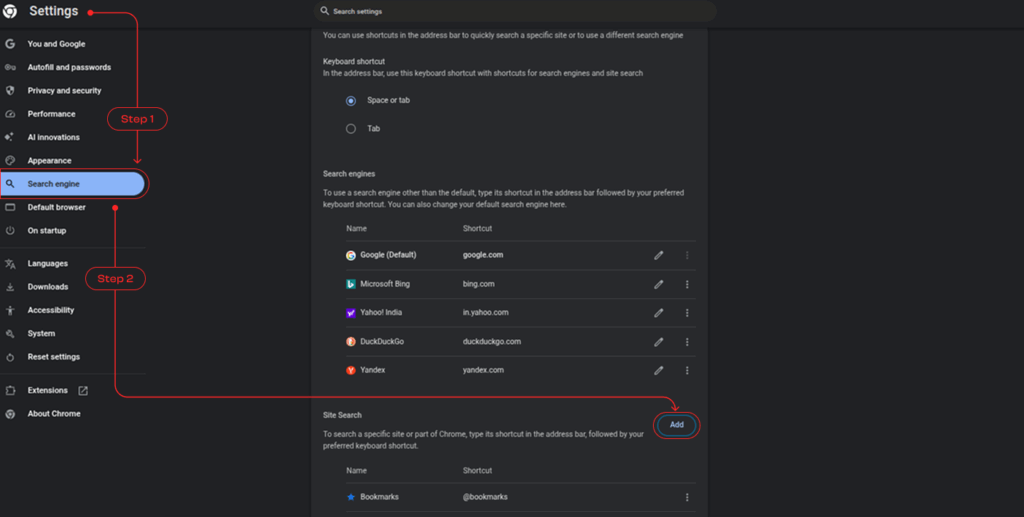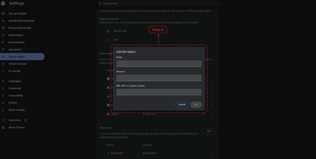 If you often find yourself typing the same searches or visiting the same sites, custom shortcuts can save you time and reduce the chances of running into AI Overviews. Most modern browsers let you assign keywords or custom commands that act like mini search engines of your own. Instead of relying on Google’s default flow, you decide exactly where your query goes. This not only speeds up your browsing but also gives you full control over how you search.